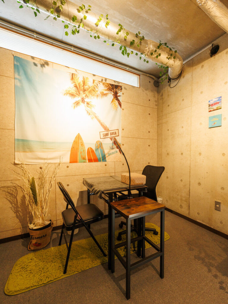 テーブル→ネイル、占い師、カウンセリング、各種講習、ベッド→フェイシャル、整体、各種講習など。